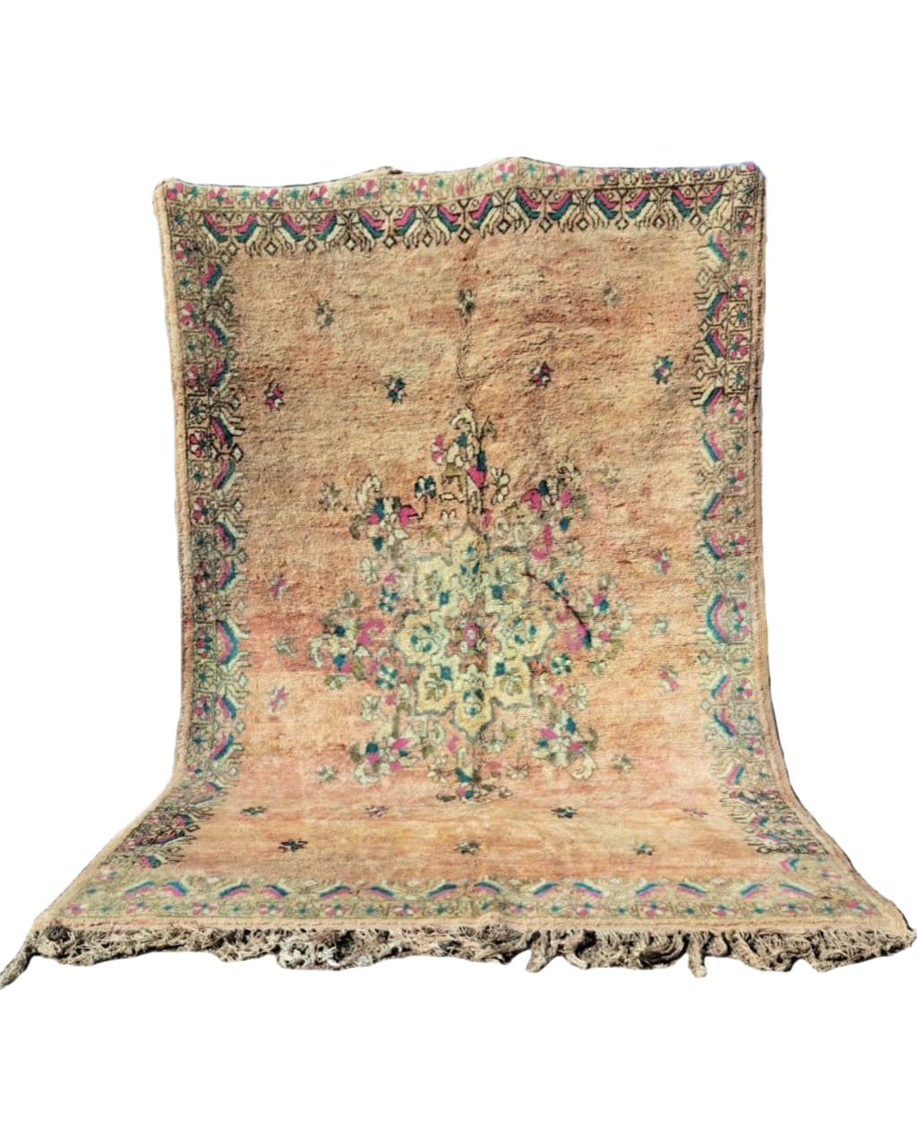 Beni Mguild handgeknoopt vloerkleed uit Marokko. De berber kleden zijn van dikke kwaliteit, een hoogpolig vloerkleed. De Mguild kleden zijn meestal paars of rood, beige of pastel. Het maken van de Beni Mguild vloerkleden gebeurt niet meer, deze kleden zijn dus oud. Er is dus slechts één exemplaar beschikbaar. Vandaag besteld is de volgende werkdag in huis. Wij leveren het vloerkleed gratis. Op die manier kunt u het zonder risico thuis beoordelen. Niet tevreden? Stuur het kleed eenvoudig terug en u krijgt uw geld direct terug.