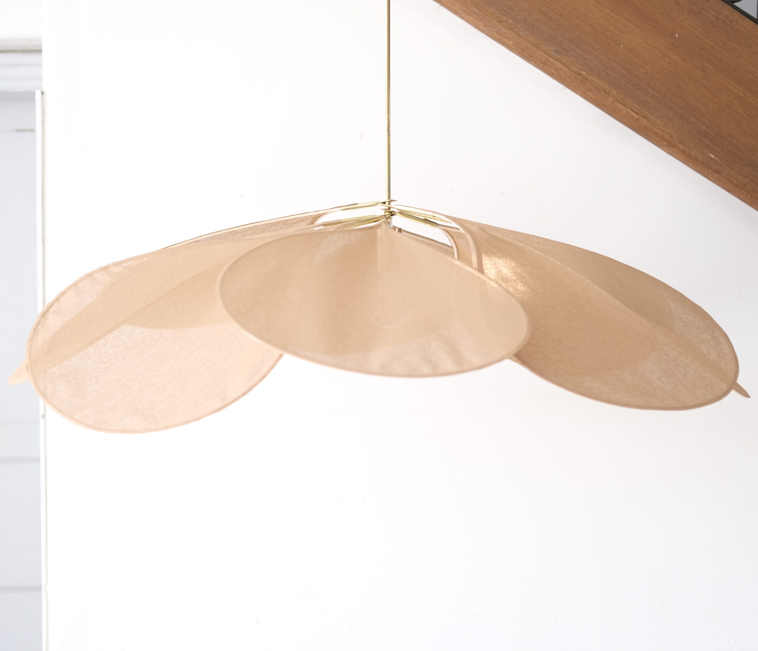 Georges’ iconische hanglampen zijn een prachtige combinatie van messing en stof in een bloemige en luchtige ophanging. Aan de eenvoud van een druppelvormig bloemblad voegt de George Store handlamp een eerbetoon toe aan de retro plafondventilatoren van slaapkamers met lamellen. Deze hanglamp speelt op subtiele wijze met licht en geeft mooi schaduwspel op het plafond.